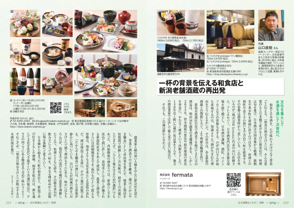 「和食日和おさけと」のポリシーや、「たからやま醸造」の再出発について触れていただいています。